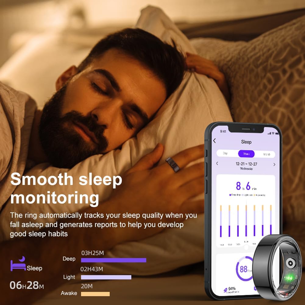 La carcasa de acero titanio, combinada con la avanzada tecnología de encapsulación criogénica, hace que el anillo sea impermeable hasta 3 ATM e IP68, lo que le permite llevarlo todos los días sin preocupaciones. No solo es ligero como una pluma, sino que también es extremadamente duradero y resistente al desgaste. Además también cuenta con una precisión de monitorización con 20 modos de ejercicio diferentes para controlar los datos de la frecuencia cardíaca en tiempo real durante el ejercicio.